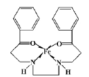 孫天祥等以甲醛、乙二胺、苯乙酮為反應主要原料,利用 Mannich 反應合成了曼尼希堿緩蝕劑。合成方法:在裝有電動攪拌器、回流冷凝管、溫度計的三口燒瓶中加入一定量的乙二胺,無水乙醇為溶劑,攪拌并滴加鹽酸溶液,調節體系 pH 值到反應所需的酸度范圍,然后再加入計算好量的甲醛和苯乙酮,不斷攪拌,控制反應溫度恒定,持續反應一定時間后,得到均勻透明的棕紅色液體為曼尼希堿酸化緩蝕劑。作者選擇溫度、時間、pH 值、醛酮胺摩爾比作為合成曼尼希堿緩蝕劑的主要影響因素,設計 4 因素 3 水平的正交實驗,考察合成產物的腐蝕速率,對合成方案進行篩選。實驗發現,在影響產物緩蝕性能的各因素中,反應物的原料配比最為顯著,其次是反應時間,而反應體系的 pH 值影響相對較小。原料配比中,甲醛比例的適當增加有利于反應的進行。首先醛和胺反應,生成反應的中間體亞甲胺碳正離子,然后再與酮生成具有緩蝕性能的曼尼希堿。苯乙酮分子中的苯環與 C=O 結合乙二胺分子中的氮原子,其孤對電子可形成大π健,結構比較穩定,因此產物緩蝕效果較好。反應過程中,時間太短,反應進行不完全,生成的目的產物較少,緩蝕效果不理想; 反應時間過長,副反應增多,也會影響產物的緩蝕效果。曼尼希反應是在弱酸性或中性條件下進行的,需要添加適量鹽酸作為反應的催化劑,鹽酸加量不足,反應難以進行; 但鹽酸加量過多,也會抑制合成反應進行。乙二胺反應活性較大,反應溫度可以適當降低。實驗獲得的最佳合成工藝條件為: 總反應時間12h,胺、醛、酮配比為 1: 4 : 2 ( 摩爾比) ,反應溫度為 50℃,pH 值控制在 4 左右。用靜態失重法對其緩蝕性能進行了綜合評價,結果表明,在 90℃、15% 的鹽酸中加入 1% 的緩蝕劑,N-80 鋼片的腐蝕速率為2.473 g/(m2·h) ,具有良好的緩蝕性能。由酮醛胺縮合物緩蝕機理可知,由于用乙二胺、苯乙酮合成的曼尼希堿分子中含有四個配位原子,能和鐵原子(離子)形成一個五元環和兩個六元環,生成的螯合物分子以多個極性基團吸附在金屬表面,從而表現出良好的緩蝕性能(圖1.2)。